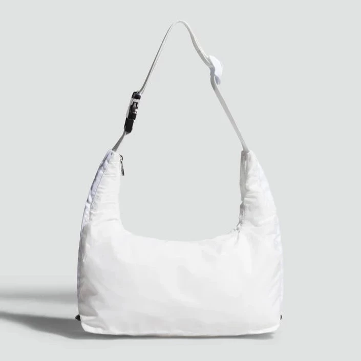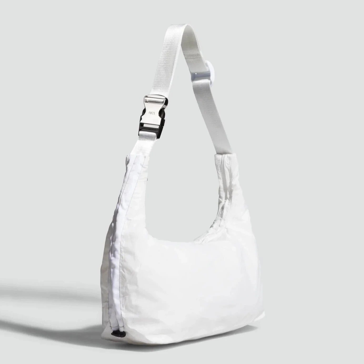ARCS keeps our future in mind as well as functionality when designing its slow made bags with recycled fabrics. The Hey Sling bag takes cues from bike courier silhouettes and you can cinch in its recycled shell with drawcords at either side, allowing it to become compact and sit comfortably under your arm.