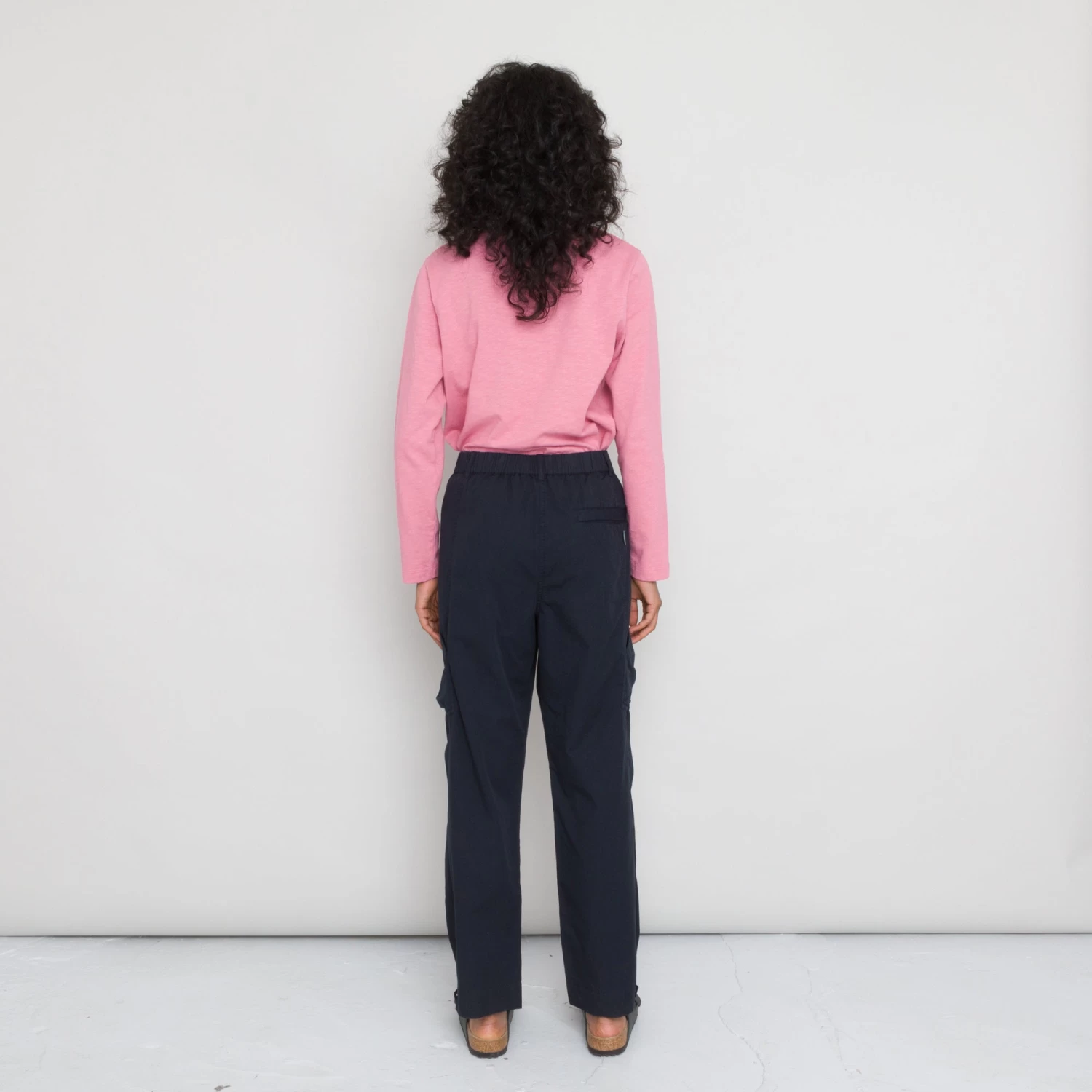 Side hem splits with contrast cotton tape facing.
