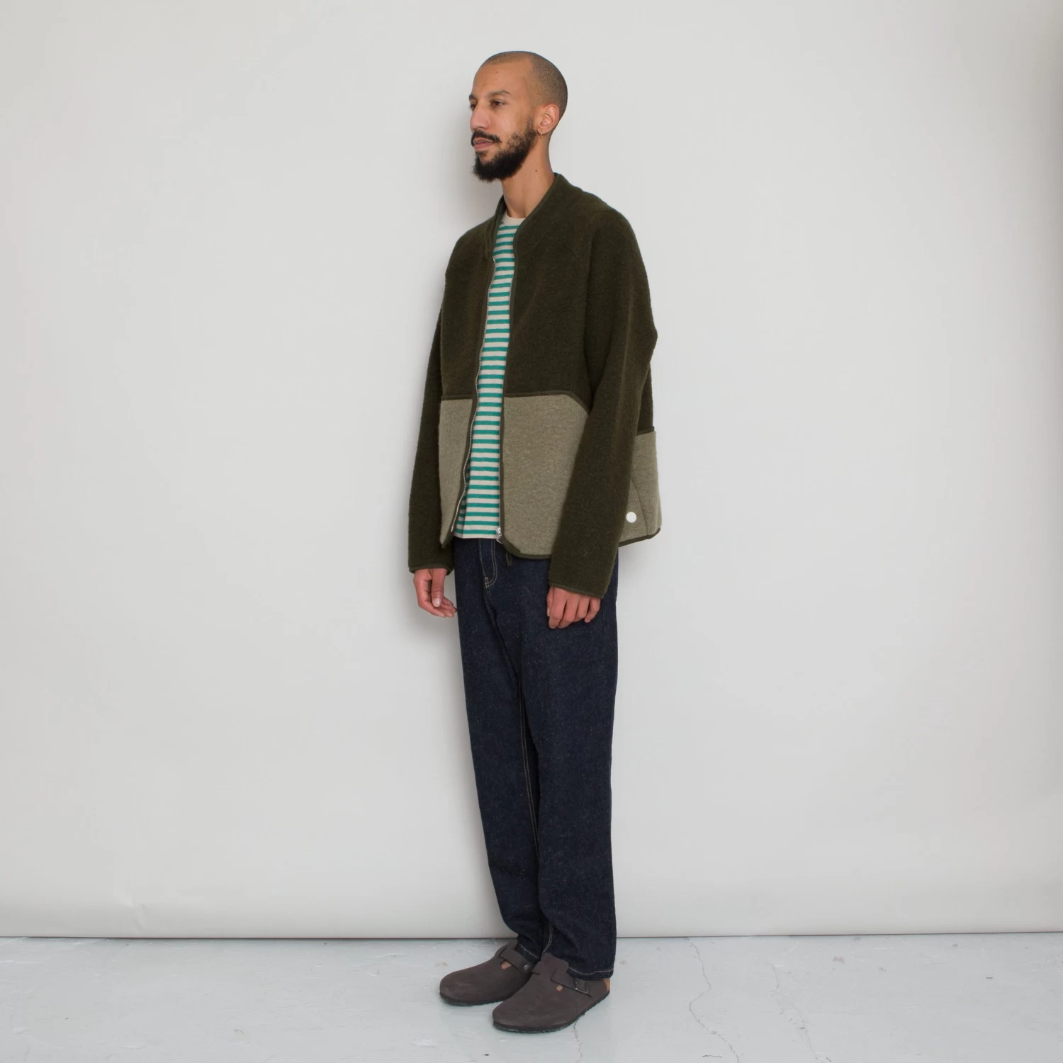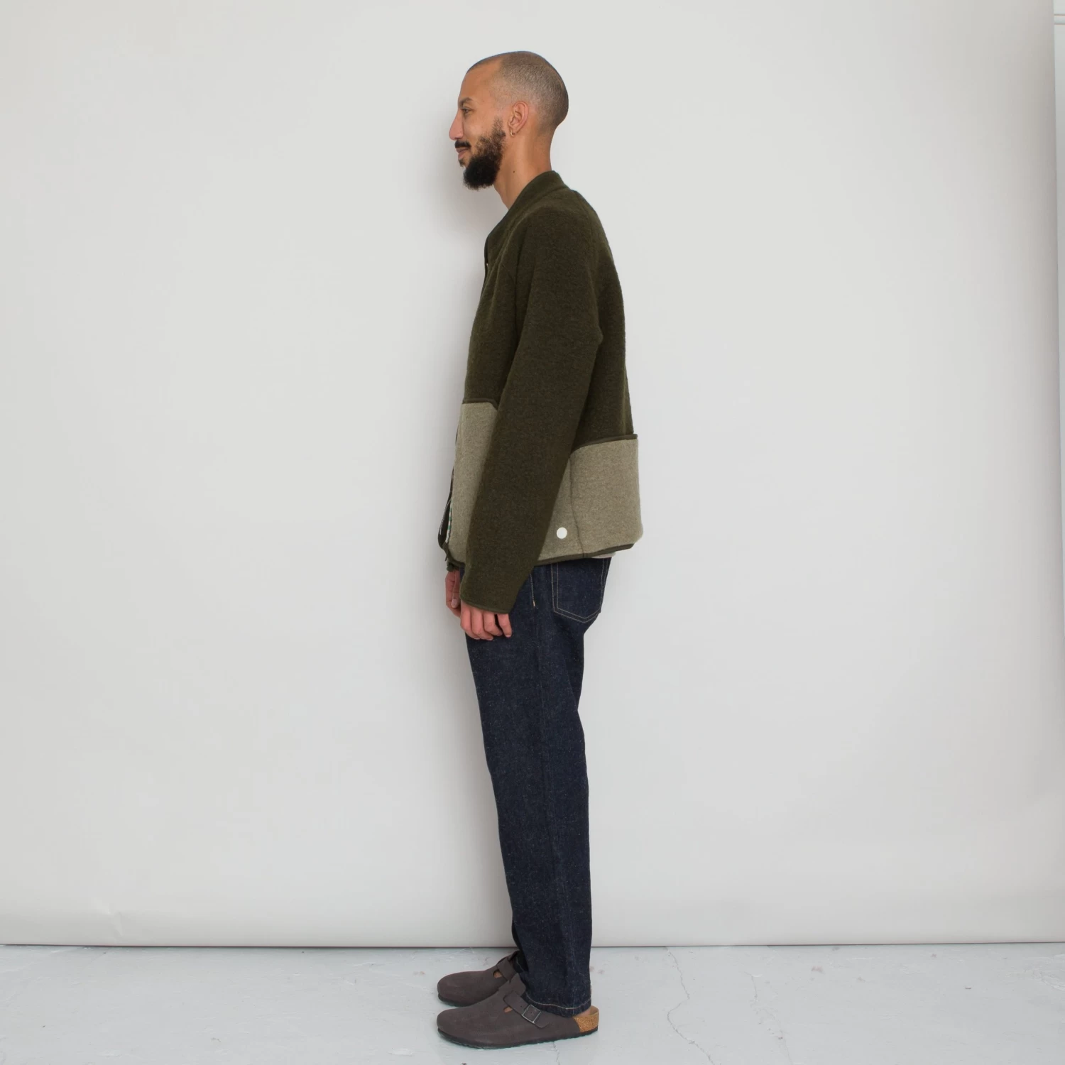 Made in a brushed wool fleece from Italy in two different tones of olive.