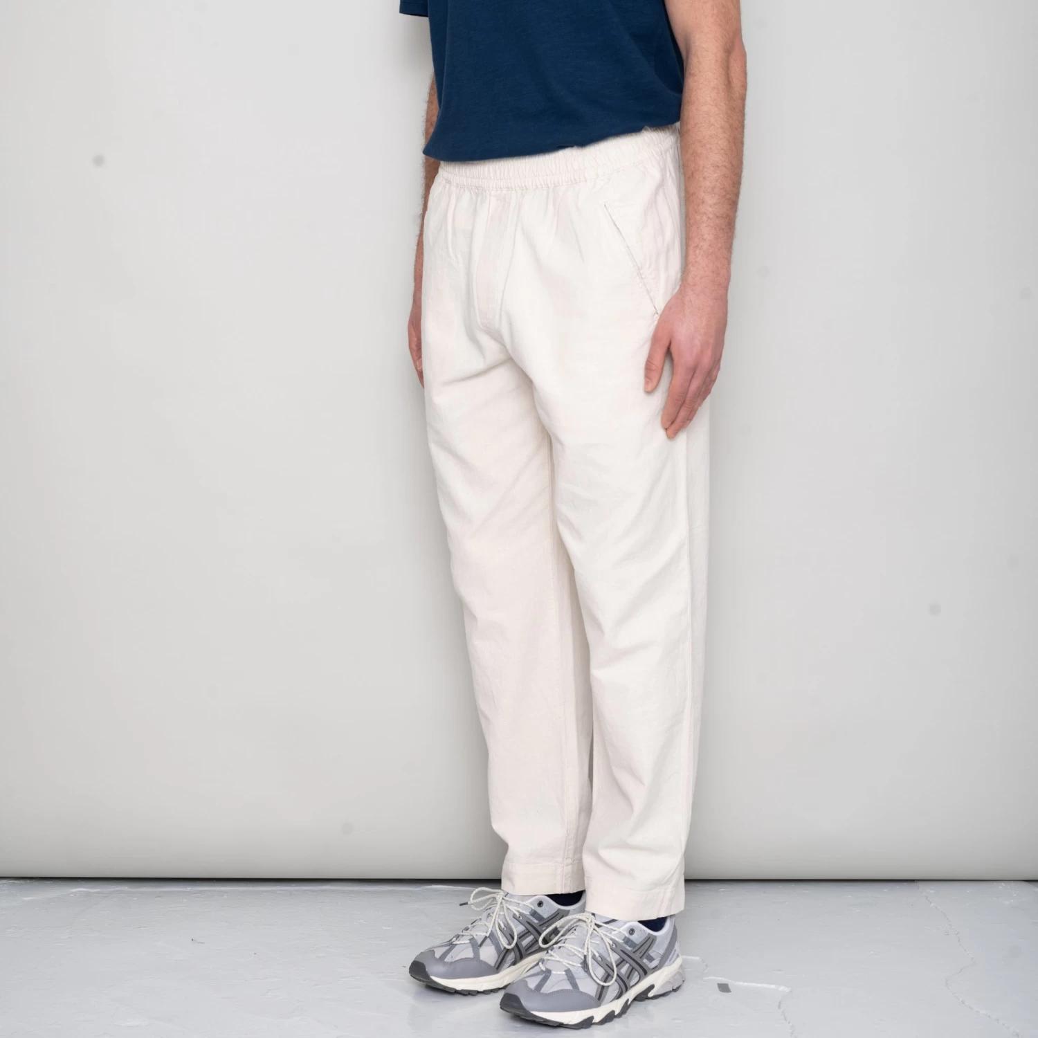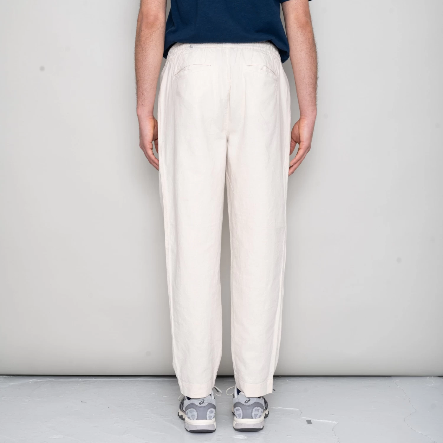Leg shape as Assembly Pant; wider, looser leg fit with cropped length with pleat detail at front.