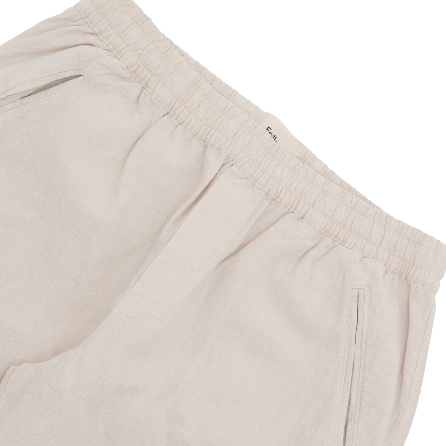 Drawcords are flat 100% cotton tape, with turned and stitched ends.
