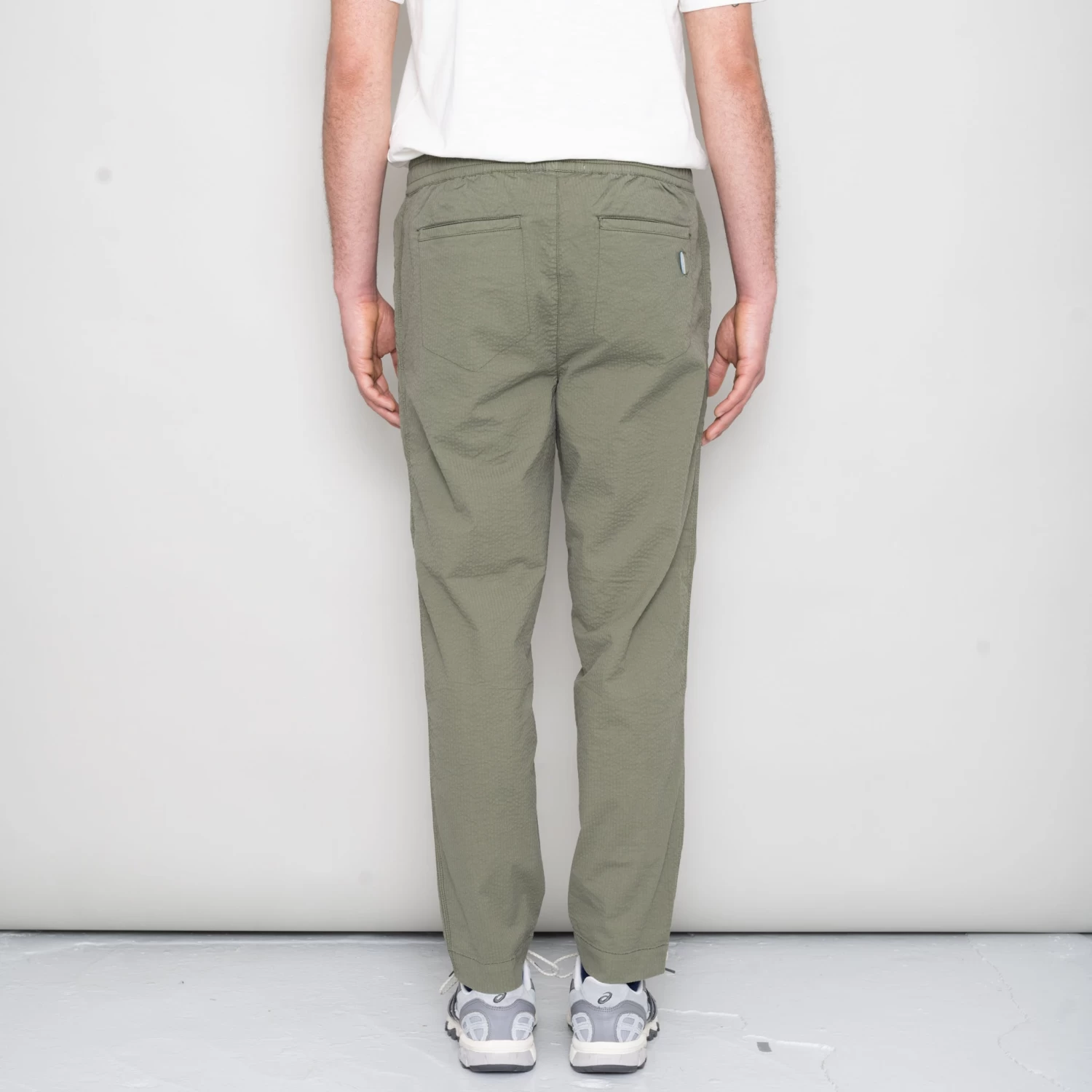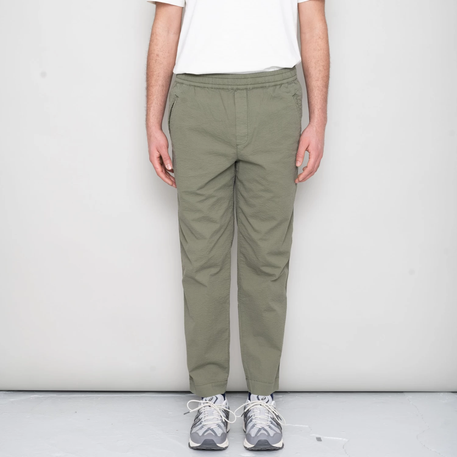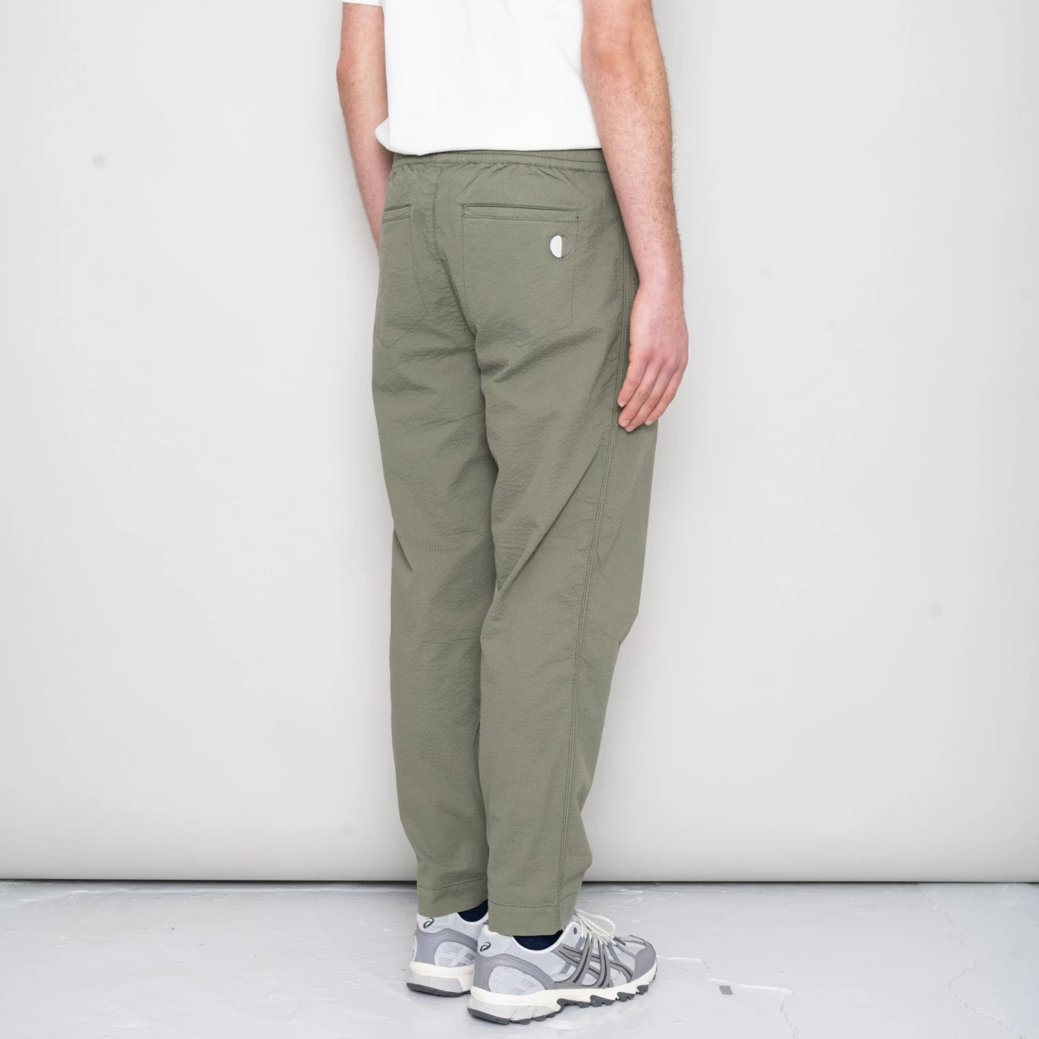Leg shape as Assembly Pant; wider, looser leg fit with cropped length with pleat detail at front.