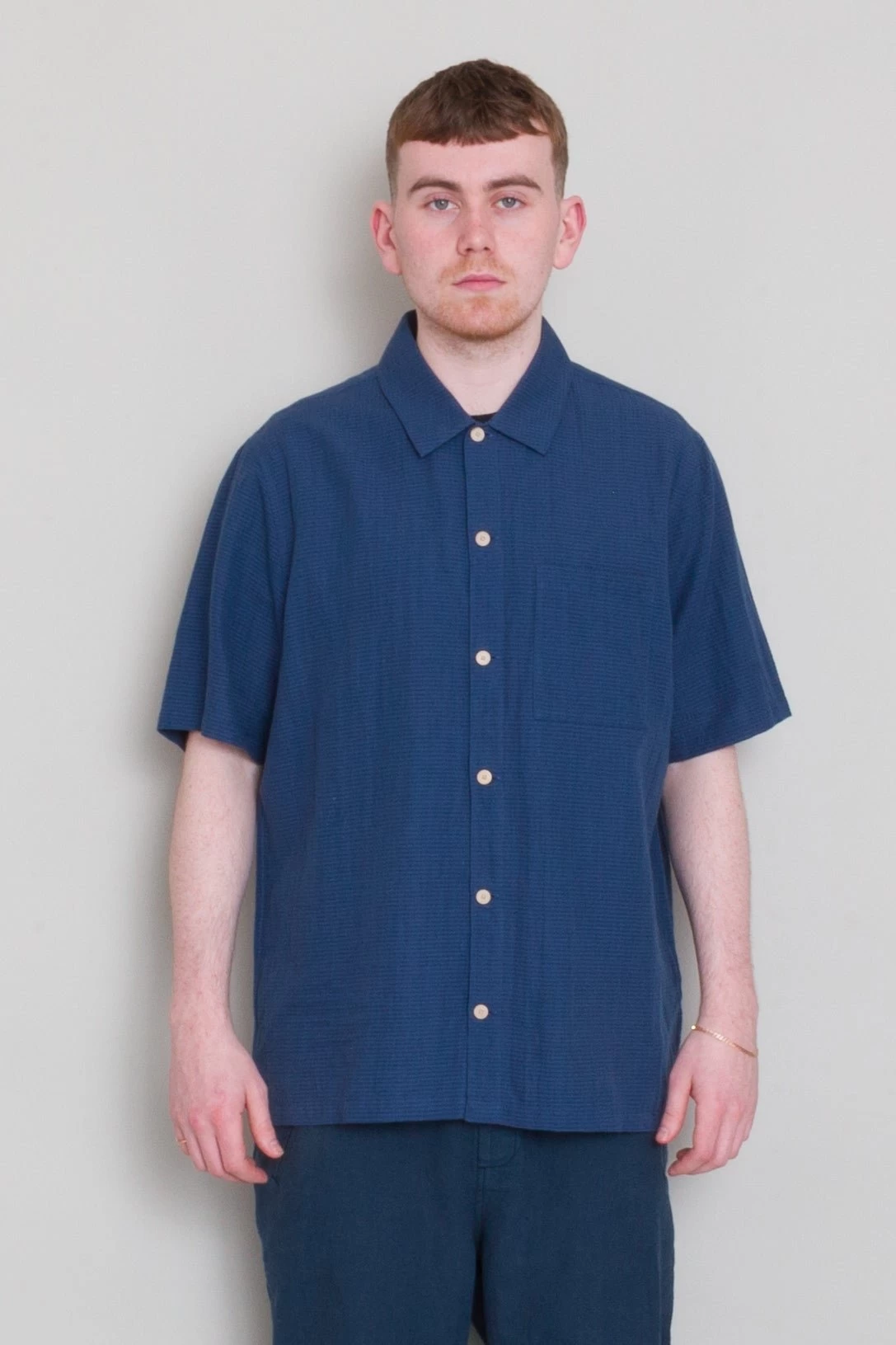 Boxy, relaxed fit short-sleeve shirt with a spread-collar.