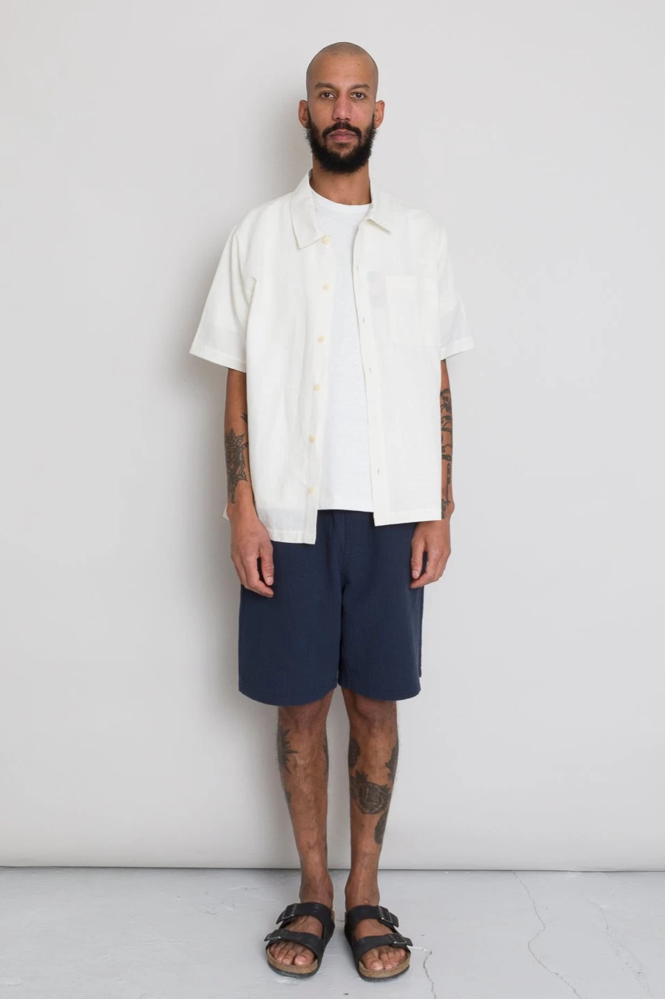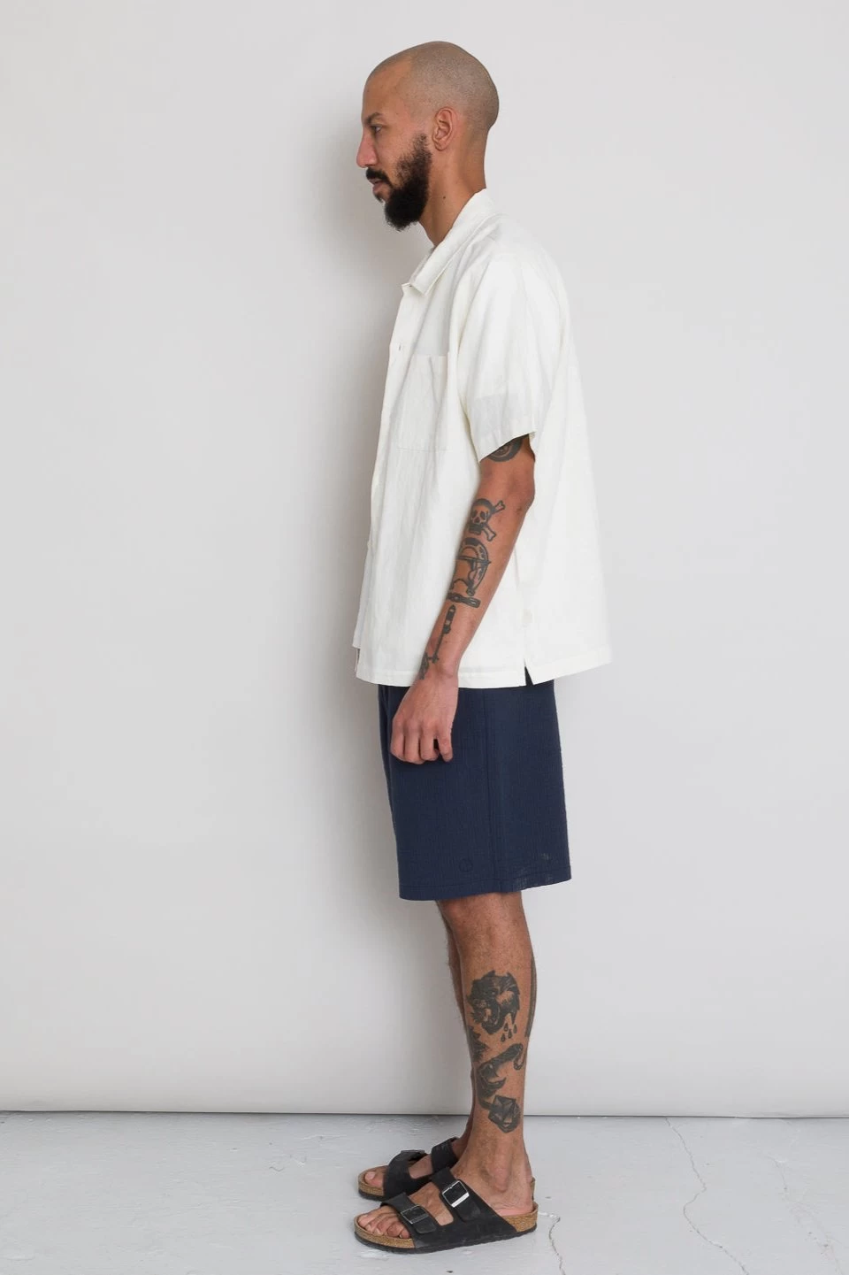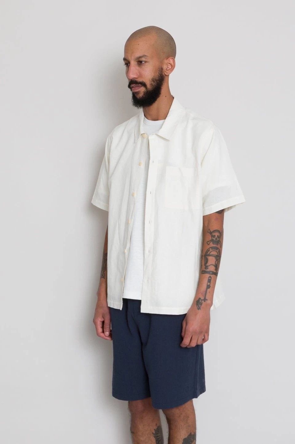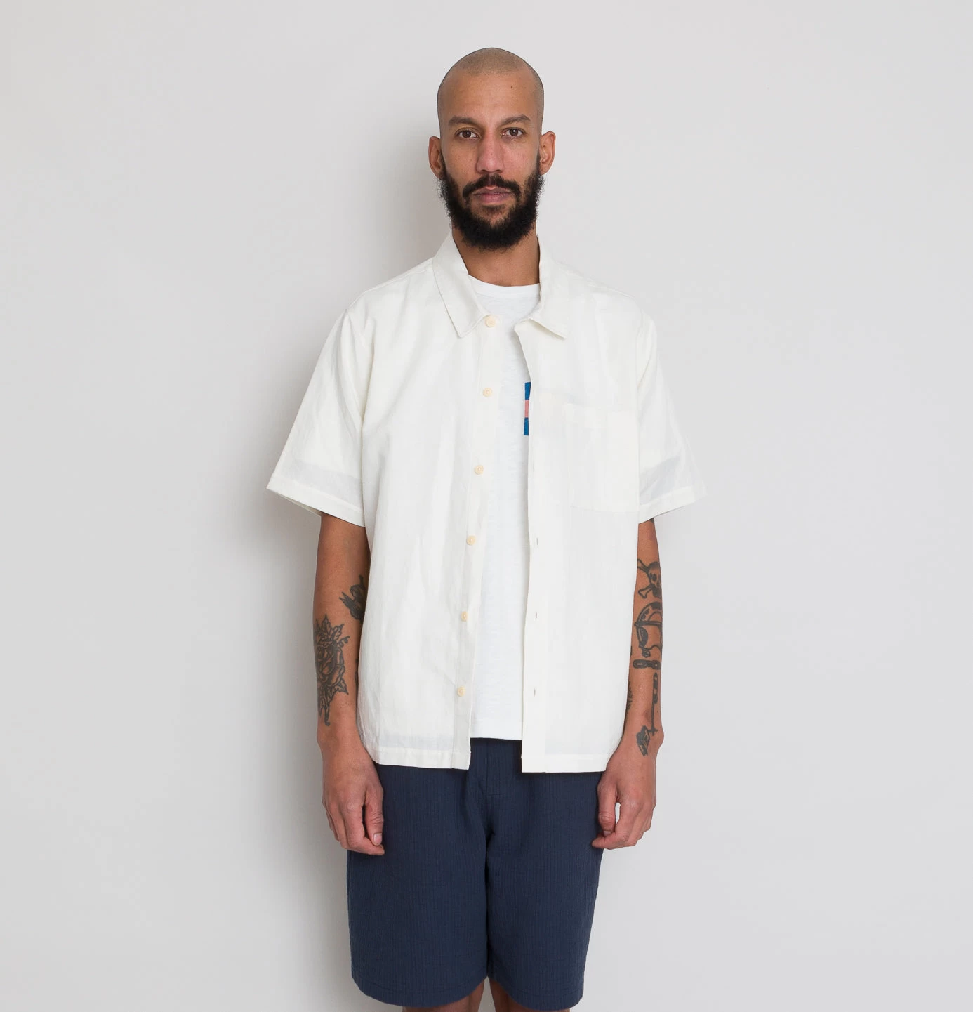Boxy, relaxed fit short-sleeve shirt with a spread-collar.