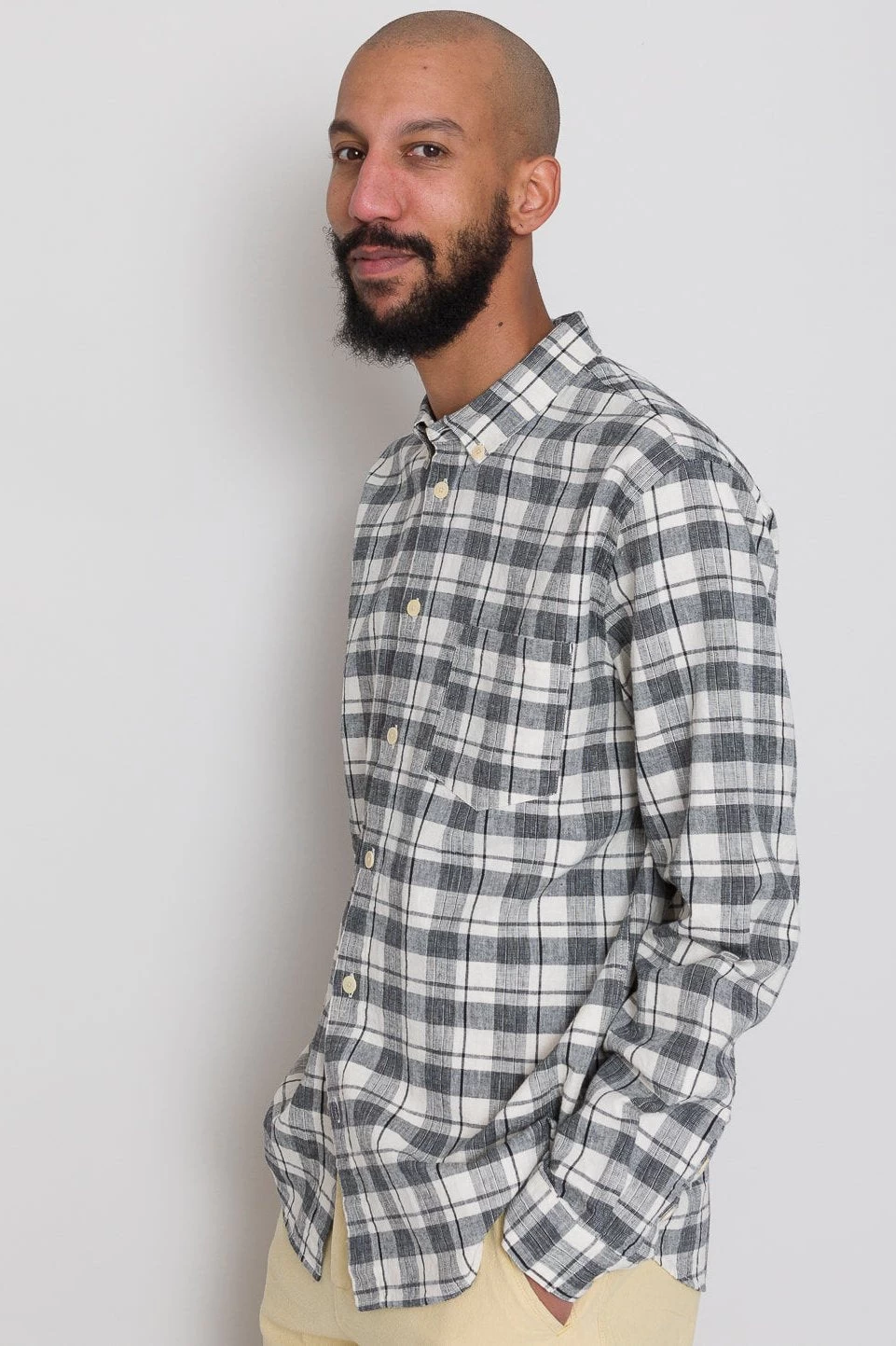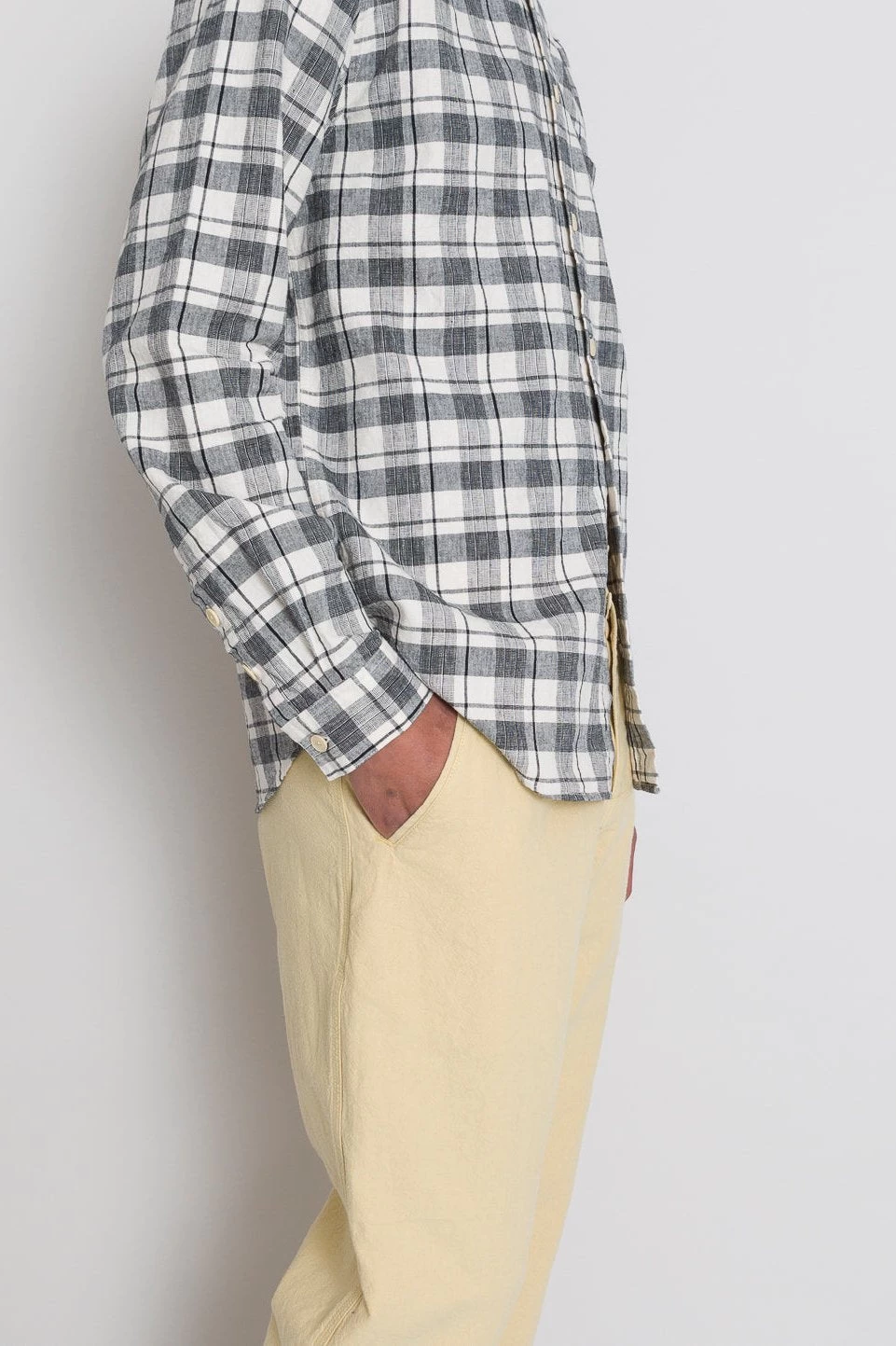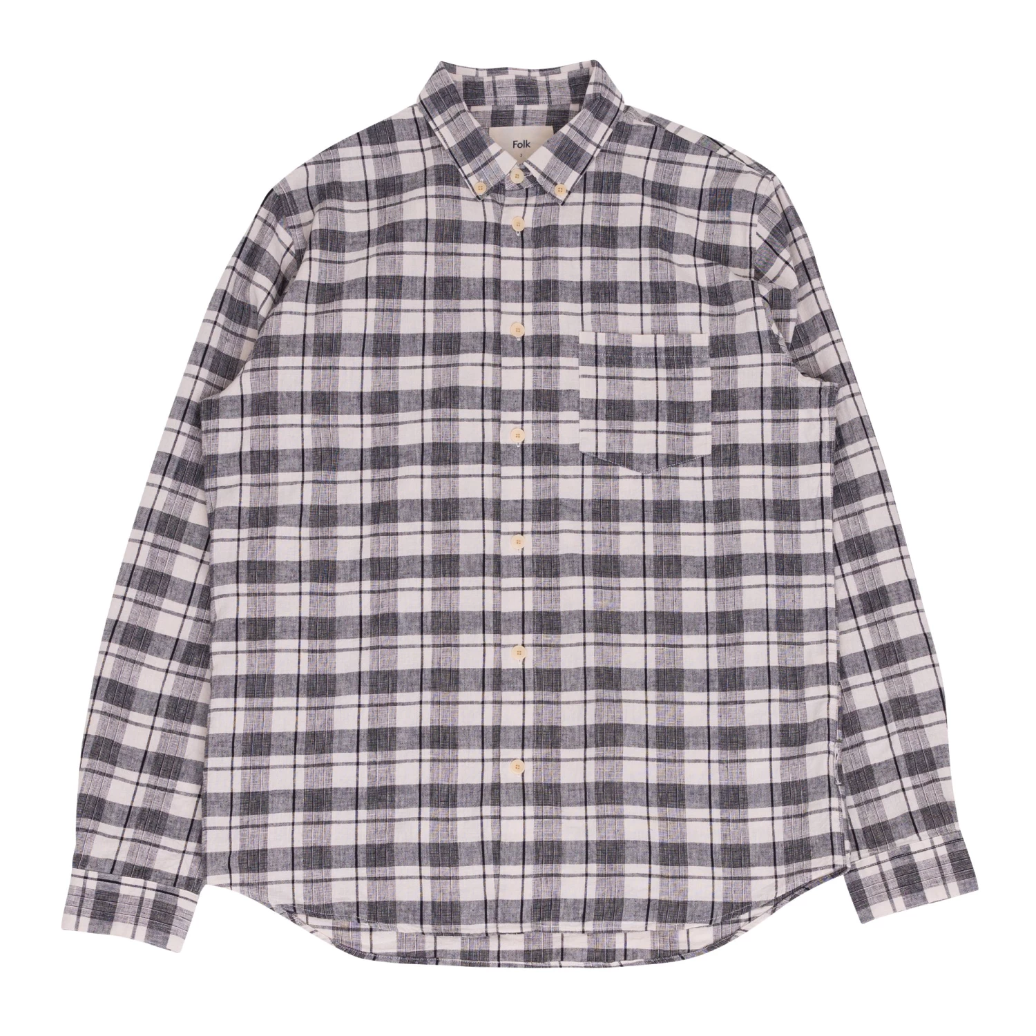 Grown on centre front button placket and button cuff and cuff placket.