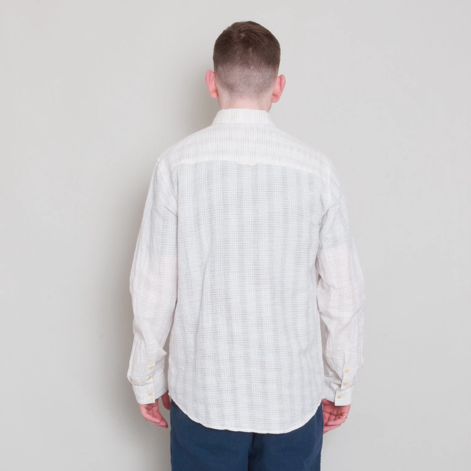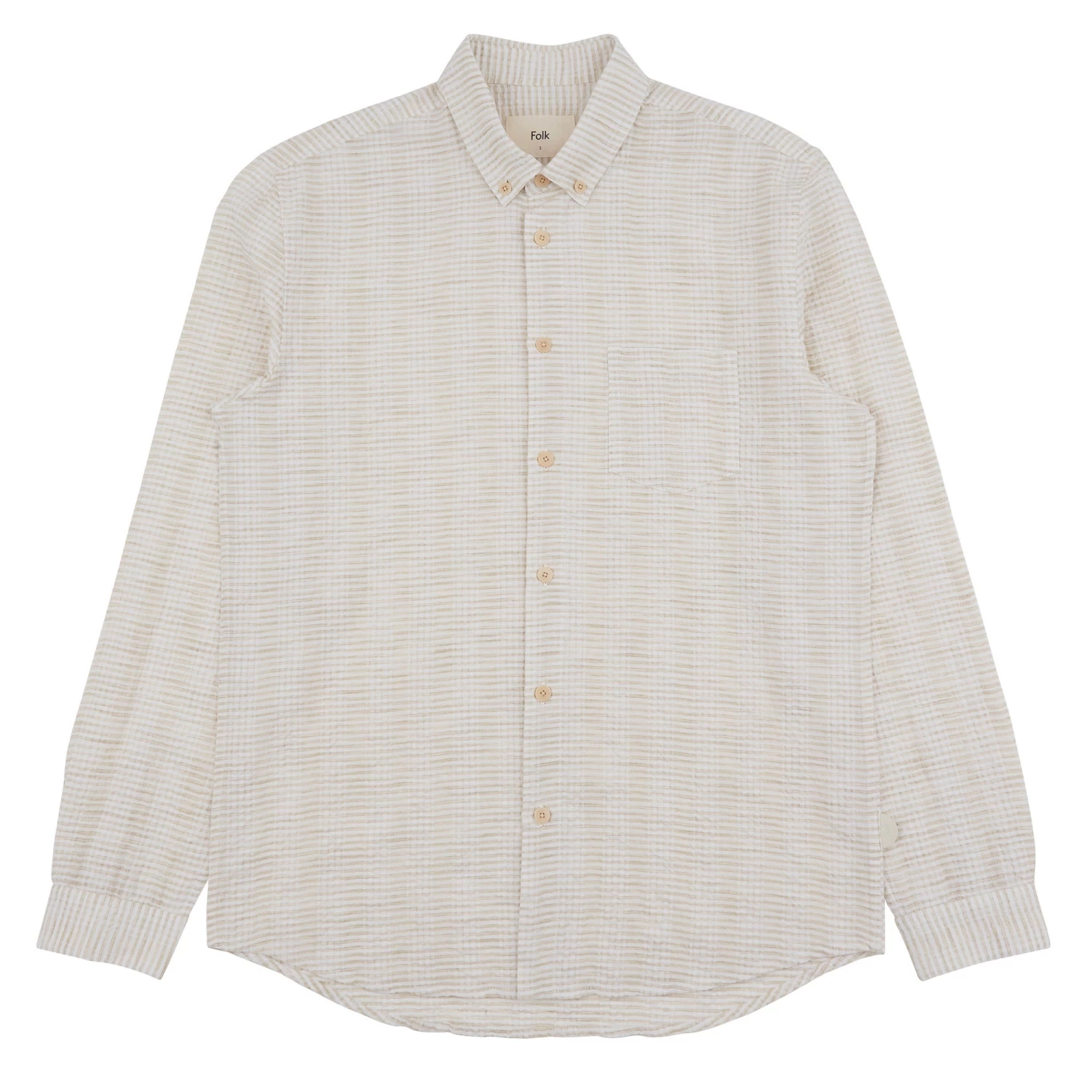 Grown on centre front button placket and button cuff and cuff placket.