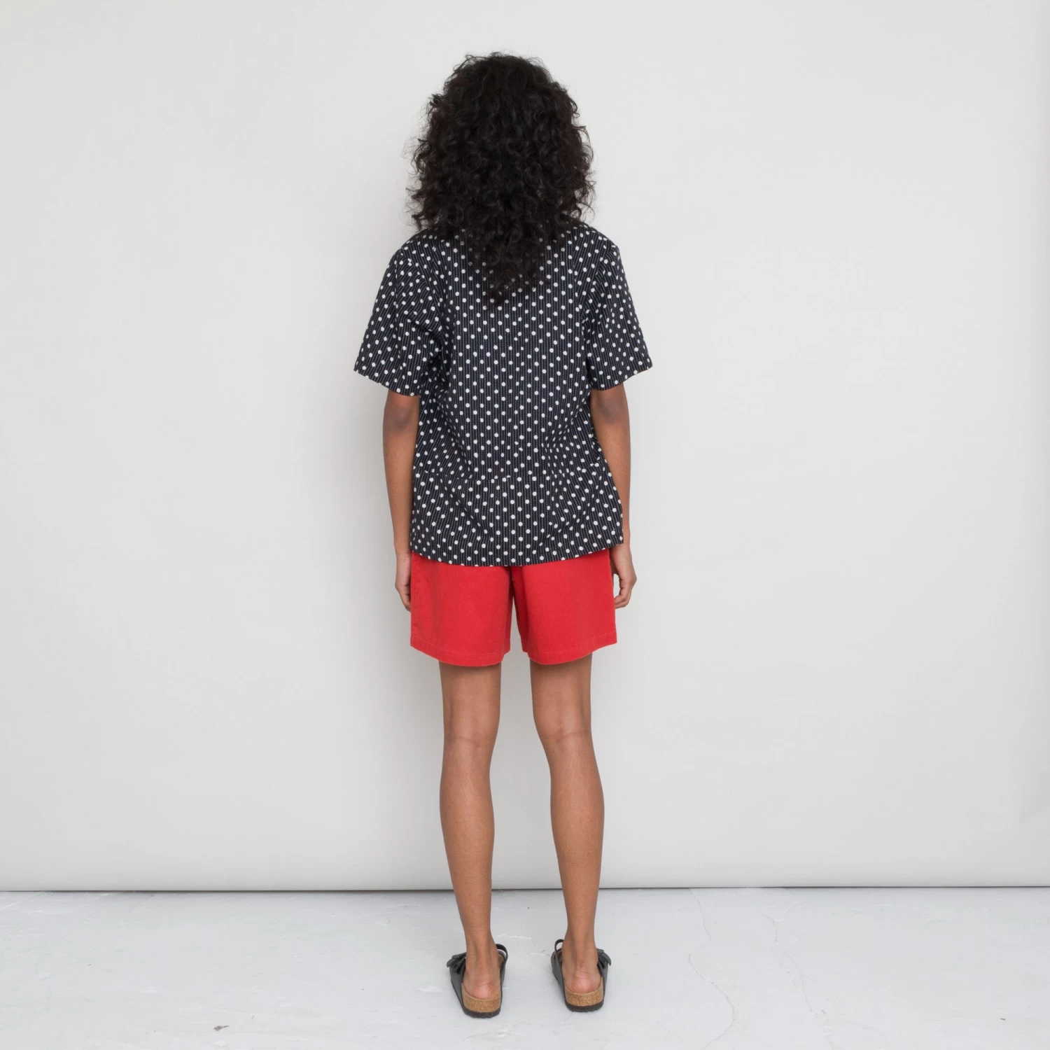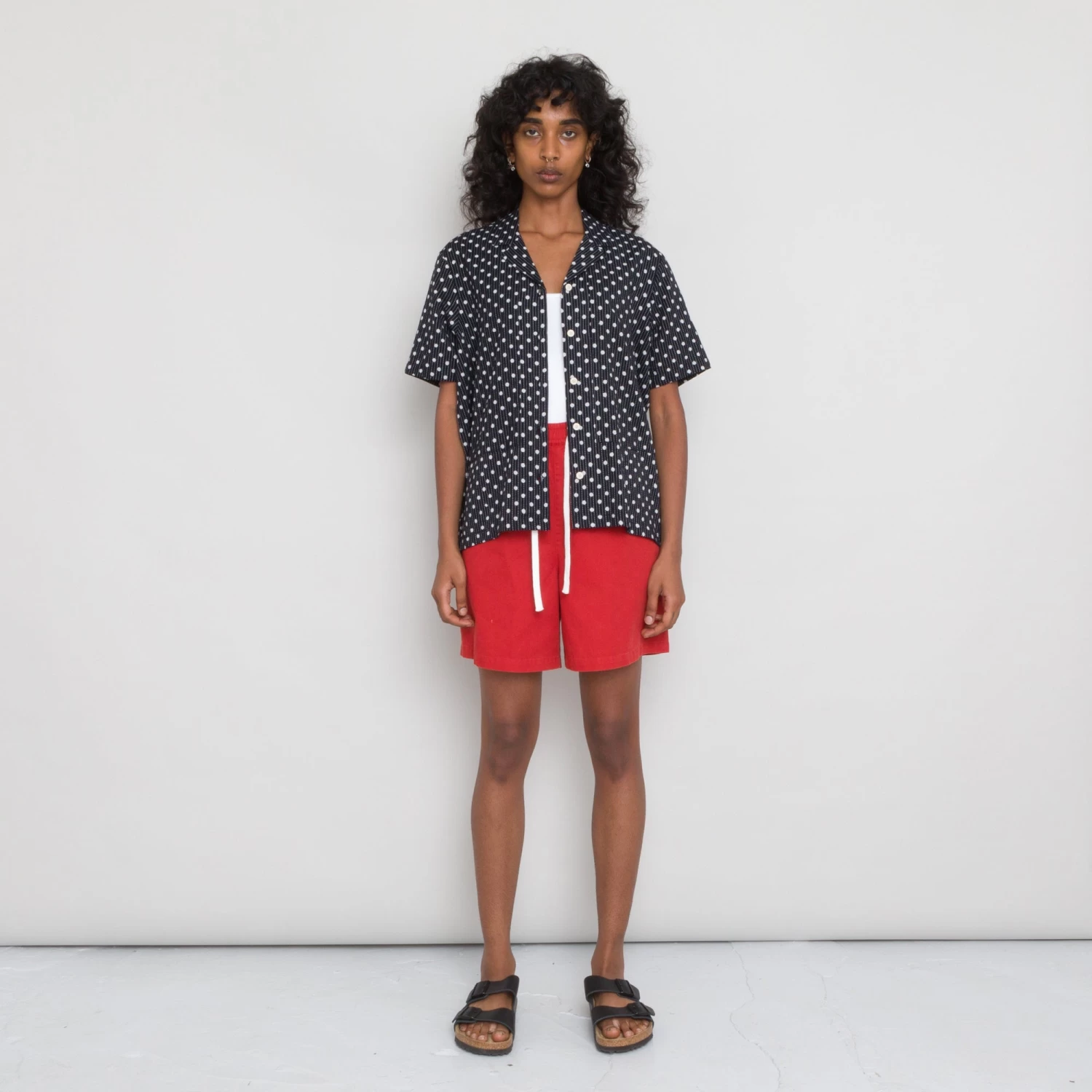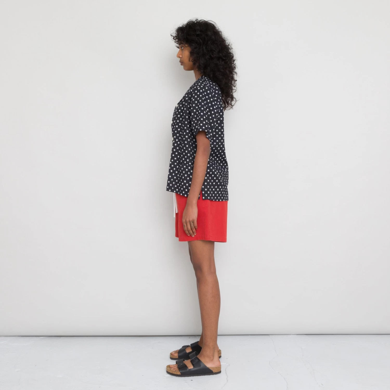 Over-laid large panels at front chest at either side in double layered fabric; with clean, in-seam pocket openings.