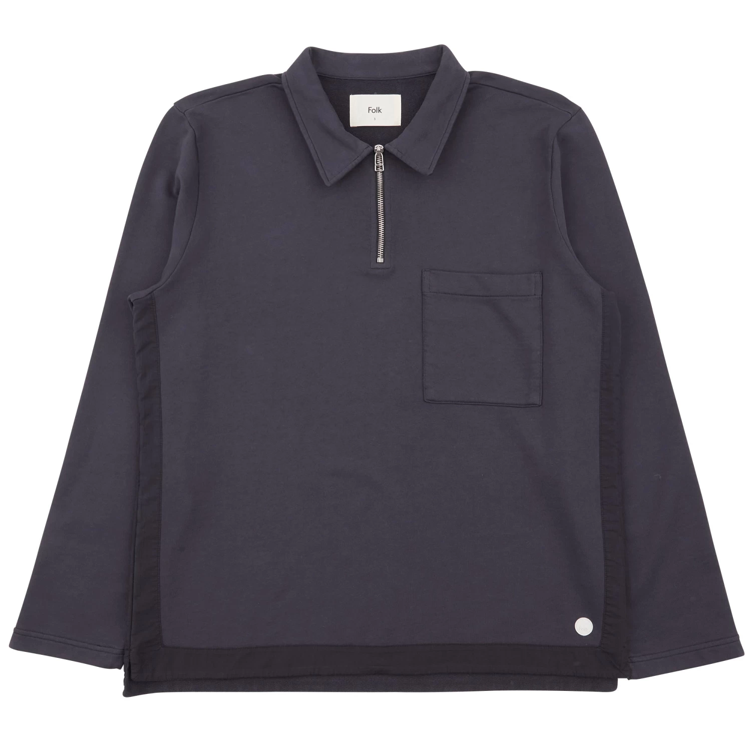 Half zip, overhead style in a compact, dry handle sweat fabrication.