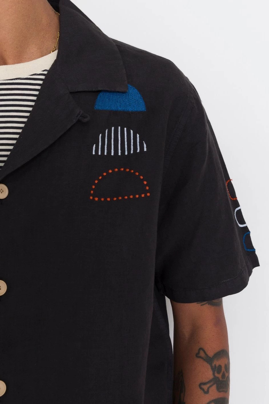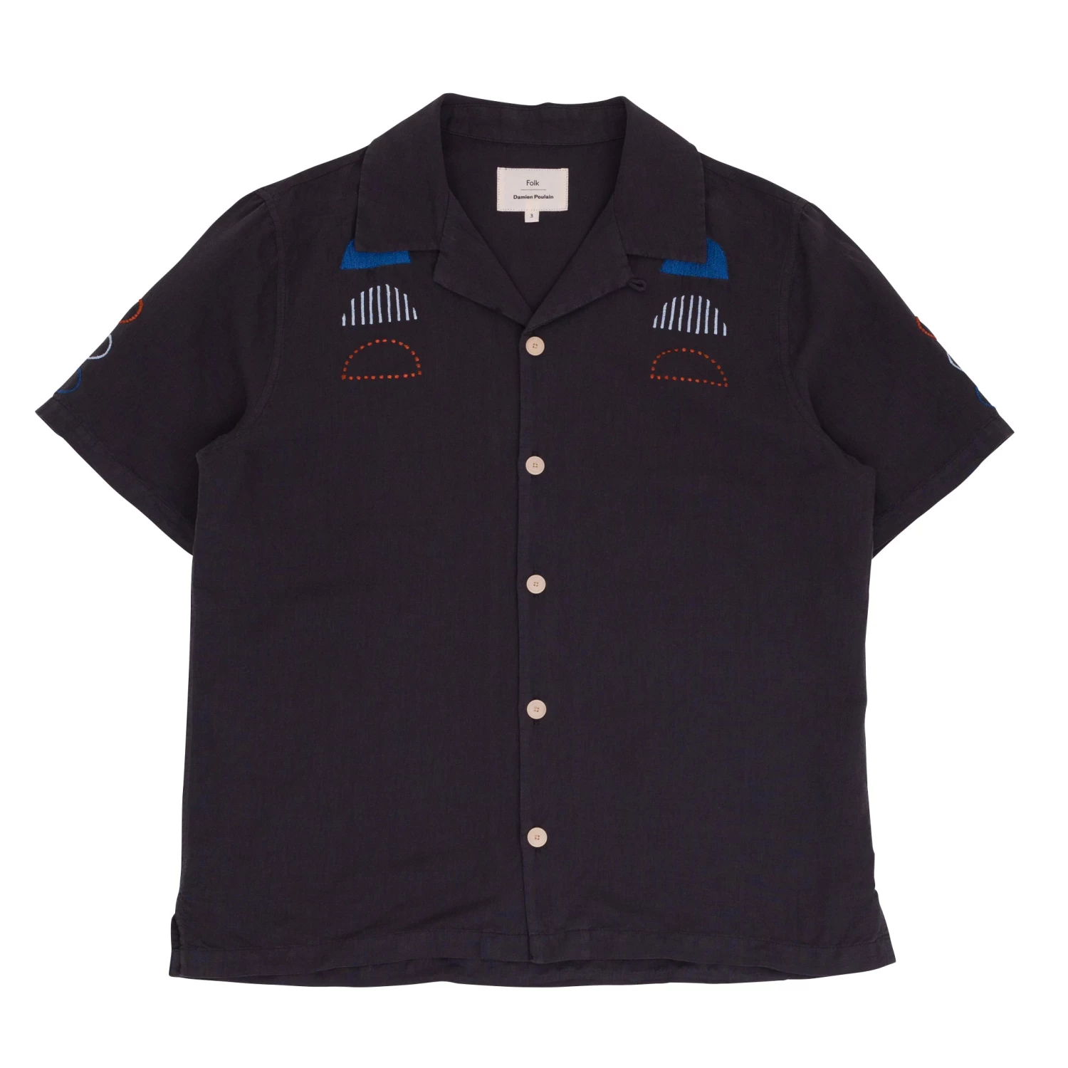 Embroidered motifs at front chest + sleeves; from artwork created for Folk by Damien Poulain.